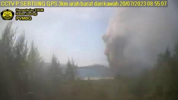 Gunung Anak Krakatau (GAK) erupsi sebanyak tiga kali, Kamis (20/7/2023) pagi. Kolom abu tertinggi mencapai 2 km.