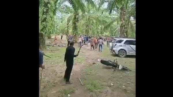 Dua kelompok massa terlibat bentrok di Pesisir Barat melihatkan petani sawit dan karyawan perusahaan sawit. Lima orang luka-luka akibat terkena bacokan.
