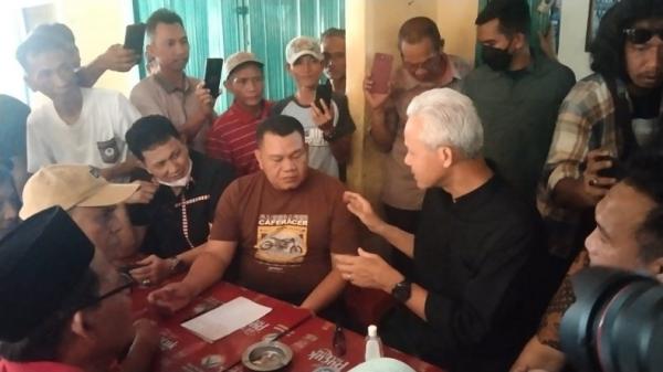 Bakal Calon Presiden Ganjar Pranowo mendengarkan curahan hati (curhat) sopir dan tukang ojek konvensional di Terminal Rajabasa Bandarlampung