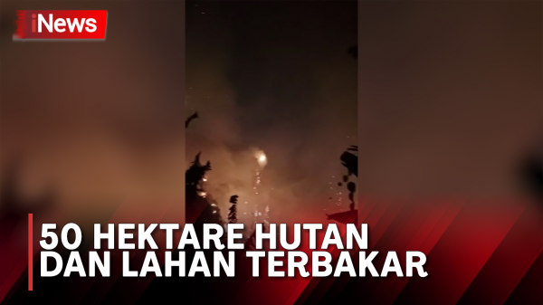 Sebuah hutan dan lahan seluas 50 hektare hangus terbakar. Lokasi di Kampung Negeri Baru, Way Kanan, Lampung